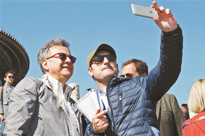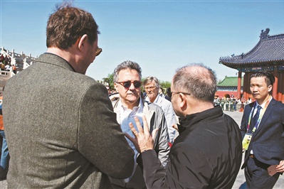 4月18日,第七届北京国际电影节“天坛奖”部分评委来到天坛祈年殿参观游览 供图/新华社