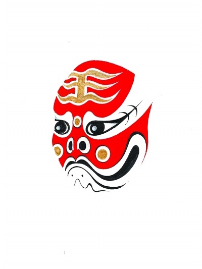 盖京剧牛魔王,例勾金脑门,紫瓤子,有鼻窝,或三膛均实金,故假牛魔王之半猴半牛,即宗原谱,取其各半而合成之,交界结合处,须用笔灵明,能使沆瀣一气最妙。昆班牛魔王,例勾红瓤子,三膛均然,且于正额作磨洗孤崖之大王字,贴金,有鼻孔,无鼻窝,眉在眼瓦内,嘴上翘特大,挂红扎。在《芭蕉扇》中,当年之胡庆和胡庆源,今日之唐益贵侯益隆,无不如是。唯侯玉山此谱,似于正额勾大金桃子,前十年恍惚见过,不甚确记矣。然均挂红扎,红蓬头,且扎红靠,与京剧皆不同也。故昆班假牛魔王脸谱,亦宗真牛魔王半个谱子,合半个猴脸而成。