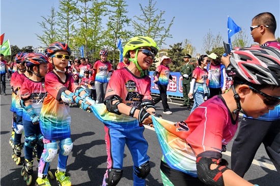 4月29日,2017北戴河第十三届国际轮滑节在北戴河奥林匹克大道公园开幕。