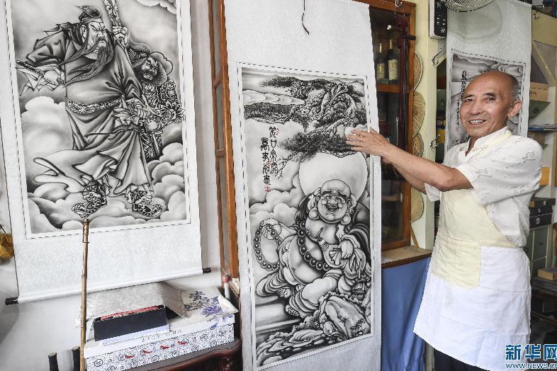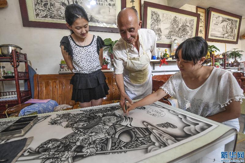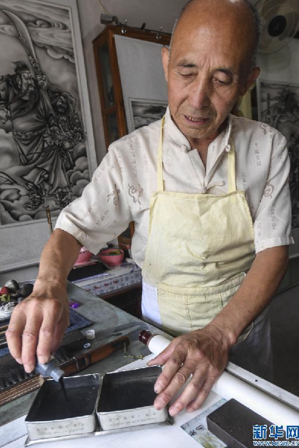 今年73岁的屈广鸿是河北省枣强县肖张镇屈纸房村人,从15岁开始独立创作碳粉画,至今已经58年,是远近闻名的碳粉画画家。为传承碳粉画这门古老的艺术,多年来,他坚持无偿教授碳粉画爱好者,很多人慕名前来学习。据了解,碳粉画是中国画中最古老的画种之一,以碳粉的浓淡、深浅为主要表现形式。新华社记者 李晓果 摄
