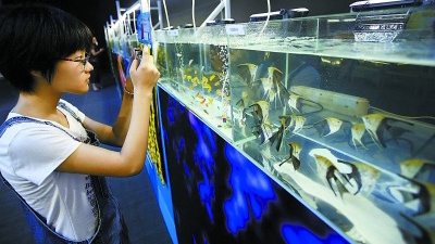 2017中国鱼乐嘉年华日前在北京郁金香温泉花园度假村开幕,活动将持续至8月20日,除展出100多种观赏鱼外,展览还包括水中微缩景观、各类海洋动物卡通形象等,为孩子打造一个“好看、好玩”的暑期新去处。 本报记者 张立朝/摄