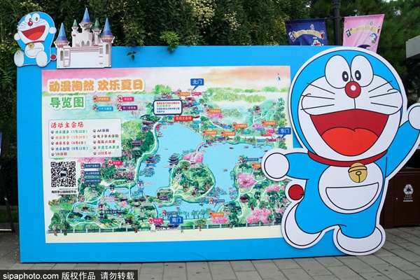 上周,北京陶然亭公园新亮相的各类动漫人物萌态十足,吸引了小朋友和游人的目光,并纷纷拍照留影。 据悉,从7月22日至8月20日,北京陶然亭公园开展为期30天的暑期动漫科普文化活动。本届暑期动漫科普文化活动以小朋友们熟悉、喜爱的“小叮当”形象为主元素,以“清凉白”和“夏日蓝”为主色调,沿园内主游览路线设立卡通动漫形象及动漫模型,供游客拍照合影留念。