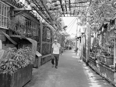 如今,再走进胡同,串儿红、指甲花、月季、海棠,花香满地。还有葡萄、豆角、南瓜、丝瓜、紫苏等。有居民说了,等葫芦熟了摘下来要给大家包饺子吃呢。高洪雷边在瓜果飘香、藤蔓遮阴的胡同中漫步,边比划着说,“上层爬着葫芦,中层挂着吊兰,下层栽着月季,两平方米的空间就能打造出上中下三层立体花园。这景致不比园林规划的街心花园差吧。”