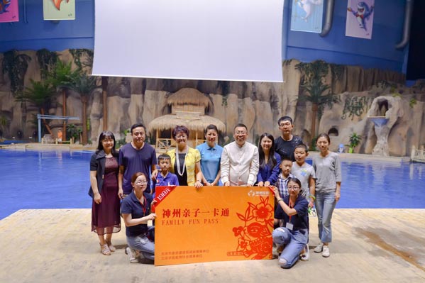 神州亲子一卡通的发行方神州佳教(北京)信息服务股份有限公司董事长兼CEO 孟庆卓先生,与重磅合作的知名亲子场馆的代表们,中国女企业家协会副会长、首都文化产业协会副会长、中国木偶剧院院长赵永庄女士,北京野生动物园副总经理杜春华先生,光明日报教育部主编杜冰女士,中国网教育频道副主编闫景臻先生,以及会员家庭代表们,共同为2018神州亲子一卡通揭幕!