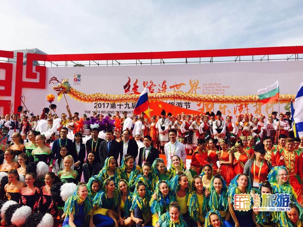 活动亮点:开幕式上,来自亚洲、欧洲、美洲18个国家的25支表演团体近700名表演者欢聚北京,与中国的民间表演团队,身着本国最具特色的民族服装,在北京奥林匹克公园鸟巢前以热情洋溢的风情演出及盛装行进表演,拉开本届旅游节的序幕。表演者汇集在奥林匹克公园景观大道,为现场观众带来了精彩的“京彩丝路情”实景演出。