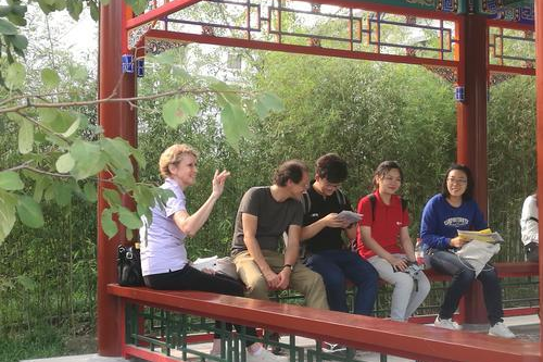 从北海公园北门出来,过马路向西100米,会看到一个有着浓郁传统古典园林风格的开放式小公园——龙头井微公园。公园里海棠、碧桃、斑竹掩映着一座雕梁画栋的中式廊亭,与北海公园里的亭台楼榭一脉相承,仿佛是北海公园里的景观漫过高高的红墙和地安门西大街,流淌到龙头井胡同。