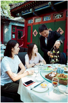 中轴线上巍峨壮阔的钟鼓楼透着威仪庄严,灰筒瓦、绿琉璃、红墙壁,艺术之精湛,视觉之壮美,令人叹为观止,承载了千年文化的积淀。用手轻轻滑过胡同口那棵干枯的老树,手心传来粗糙的触感,让岁月的痕迹从指缝间划过,仿佛看到历史的书卷缓缓打开。在洲际礼宾司的陪同下,走进熙熙攘攘的老字号北京小吃店,五六张桌子的店里,一水儿的上了岁数的老北京,左手包子,右手焦圈儿,面前一碗咕嘟着泡的豆汁儿,亲切的京片子在耳边响起。糖油饼,豆腐脑,白墙上挂着的单子上的早点都是老北京从小吃到大的,总有一样能满足你的胃。