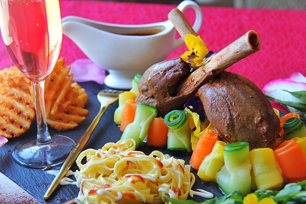 迷迭香红酒烩羊腱中的红酒可以中和羊肉的膻味,羊肉也会在迷迭香的催化下激出更丰富的味道。羊肉性温,不仅能够御寒还能滋养身体,对女性食客更有保养之功效。