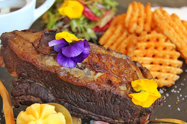 全日餐厅Feast从今年夏天就为食客们准备了全新的牛排半自助晚餐。精选来自斯道克亚德谷饲250天的安格斯战斧牛排,由我们专业的厨师团队亲自为食客烹制此牛排,并配有炸牛排薯条、芝士弯管面、焗土豆泥、扒番茄以及蒜味蘑菇等配菜,再淋上黑椒汁,一道美味的战斧牛排便呈现在大家的面前。