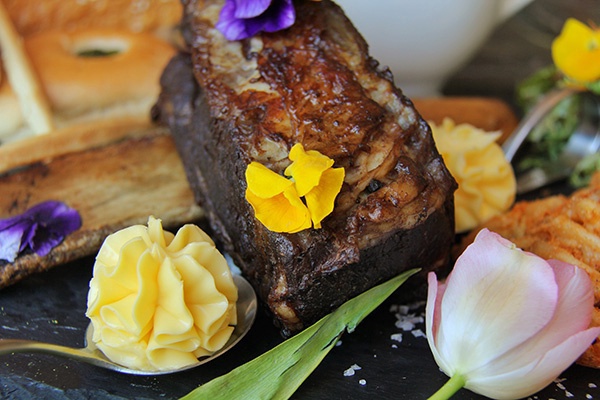 慢烤牛肋排经过24小时的腌制非常入味,以锡纸包裹后低温烤至,过程中不断翻面刷酱,以便保持肉质的外脆里嫩,是牛肉爱好者的不二佳选。