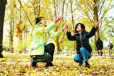今天上午,市公园管理中心向市民推荐了20处最美的“落英缤纷”景点。记者在陶然亭公园看到,潭影流金、独醒亭、爱晚亭景区已是银杏叶铺地,满目金黄,处处成景。刘平摄