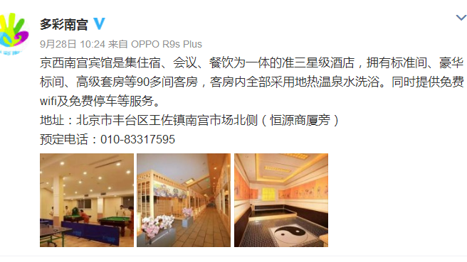 京西南宫宾馆是集住宿、会议、餐饮为一体的准三星级酒店,拥有标准间、豪华标间、高级套房等90多间客房,客房内全部采用地热温泉水洗浴。同时提供免费wifi及免费停车等服务。