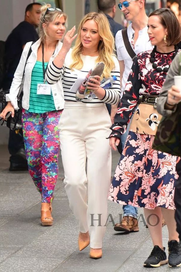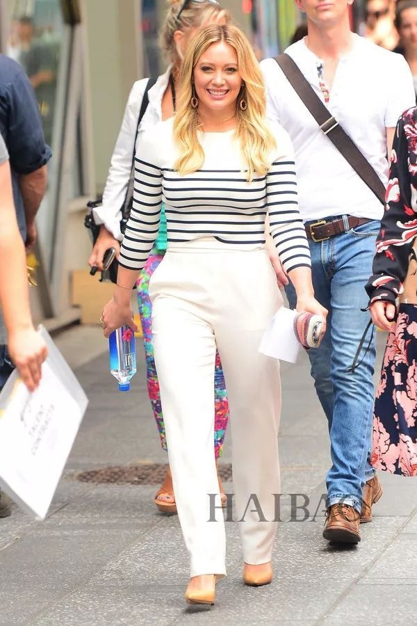 6月20日希拉里·达芙 (Hilary Duff) 身穿条纹上衣现身纽约街头