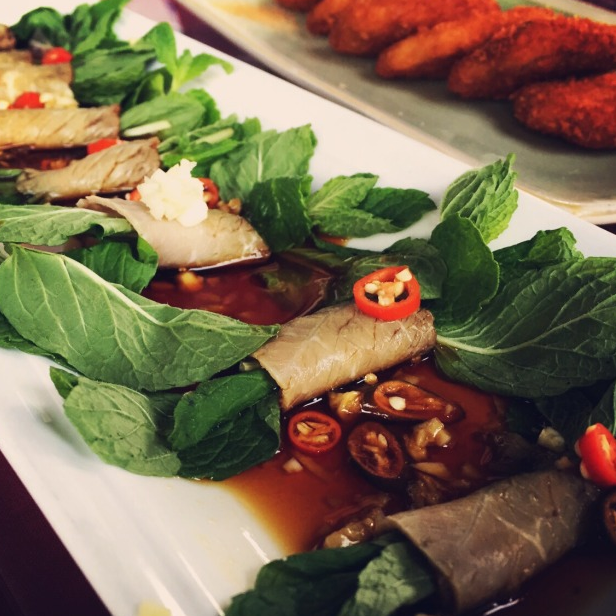 一楼禅意的装饰给人内心宁静之感;二楼、三楼能看到鼓楼和周围院 落,闹中取静,十分温馨,是个聊天的好去处。出品很赞,牛肉拌薄荷特别好吃,牛肉带着薄荷的清凉,味道绝了;香茅草烤鱼、 包烧豆腐也不错,米酒里有淡淡的桂花味,冰凉爽口很好喝。晒晒太阳,吃着美食,心灵也沉浸于古镇般的恬静与安详。