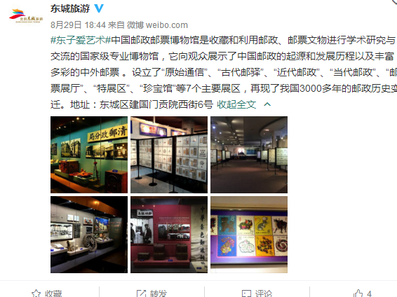 中国邮政邮票博物馆是收藏和利用邮政、邮票文物进行学术研究与交流的国家级专业博物馆,它向观众展示了中国邮政的起源和发展历程以及丰富多彩的中外邮票 。设立了“原始通信”、“古代邮驿”、“近代邮政”、“当代邮政”、“邮票展厅”、“特展区”、“珍宝馆”等7个主要展区,再现了我国3000多年的邮政历史变迁。地址:东城区建国门贡院西街6号