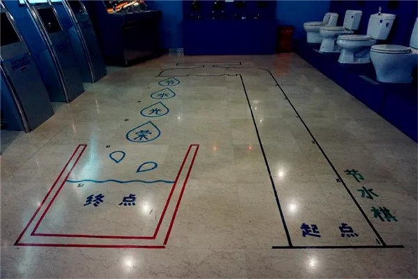 地板上从起点至终点共有15步,色子的六个面分别印着各种节水或浪费水的行为,根据所掷出的色子指示前进或后退,虽然只有简单的15步,但过程中有进有退,趣味互动性就变得极强。节约水资源的行为越多,就会让自己越早获胜,让孩子们懂得了节约用水的重要性······