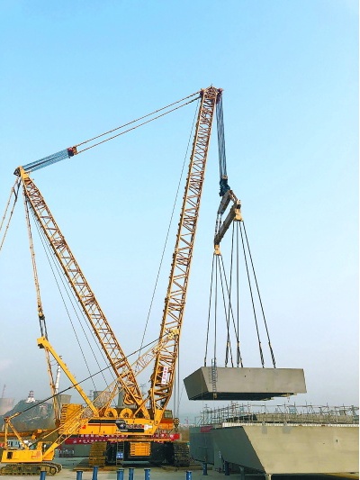 “可以说,这是北京地区跨径最大、高度最高,也是难度最大的跨河大桥。”施工方北京城建集团长安街西延永定河特大桥工程项目部项目总工何辉斌站在现场,指着正在高空作业的履带起重机说,当初,仅为运输组装这台起重机的零件,就装了满满85辆车。