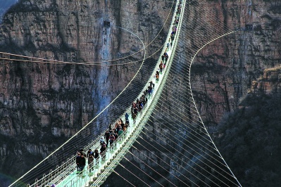 12月24日,在河北平山县红崖谷景区,世界最长的悬跨式玻璃吊桥正式对外开放。