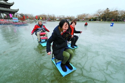 今天上午,以湖面形成的天然冰场为依托的陶然亭公园冰场正式开放,包括冰车活动区、冰上碰碰车活动区、滑冰活动区、冰上自行车活动区、冰滑梯活动区5个区域。