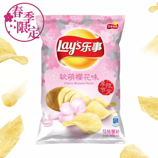 国产乐事竟然也很懂行情的出了樱花味薯片,软萌的包装让探索君忍不住立马下单买了两包!