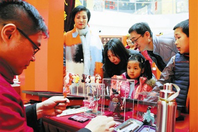 带着家传上百年的内画鼻烟壶技艺来参展的王新年对记者说:“在新春佳节到来之际,能让更多的市民百姓了解这一用‘内有乾坤’一词来形容的内画艺术,我特别高兴。”今年80岁的王奶奶在拉洋片展台前驻足观赏,她对记者说:“这可是我小时候的玩意儿了。没想到,如今过去这么多年还能见到。”