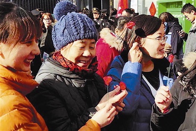 今日,和平区金泉里社区举办“巧手制玫瑰 送人留余香”活动,邀请非物质文化传统手工艺制作老师教大家制作玫瑰花。 庞 剑摄