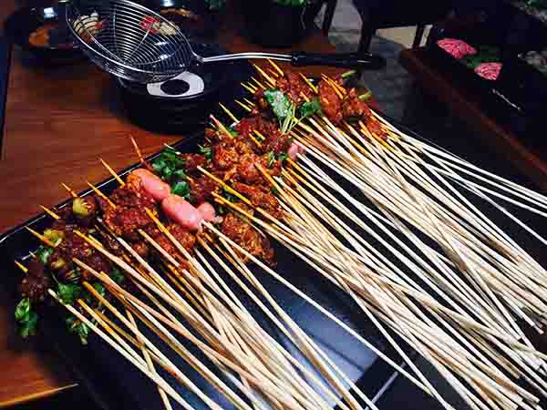 店面很小,只有司长桌子,大多数人来买都是打包带走。生意可以说是非常好,排队是常有的事。主打各种接地气的四川小炸串,荤的一元,素的八毛,鸭肠九元一份。毕竟点名就用了乐山特产的辣椒名,还是很值得一试的,串小,吃上可能就停不下来了哦!