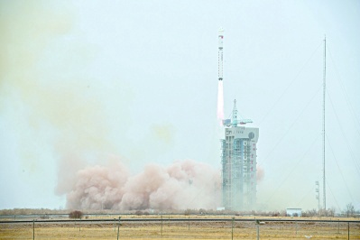 17日15时10分,我国在酒泉卫星发射中心用长征二号丁运载火箭,成功将陆地勘查卫星四号发射升空,卫星进入预定轨道,发射任务取得圆满成功。