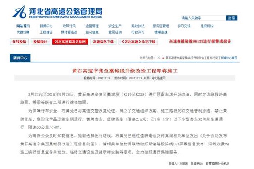 河北日报客户端讯(记者曹智 通讯员金晓光)从河北省高速公路管理局获悉,今年3月22日至9月28日,黄石高速辛集至藁城段将进行改扩建施工。施工期间,黄石高速将采取相应交通管制措施。