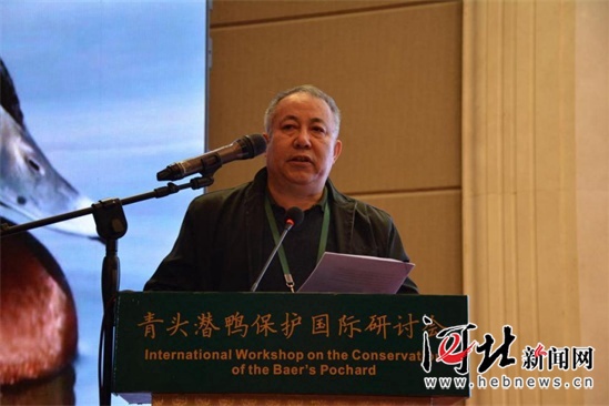 3月19日,青头潜鸭保护国际研讨会在衡水隆重开幕。图为“湿地国际”中国办事处主任陈克林在研讨会上发言。