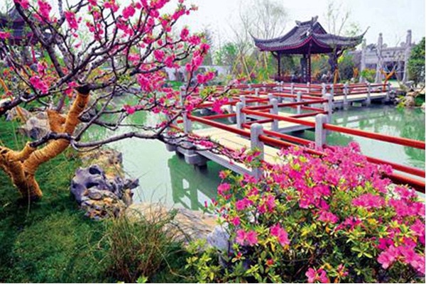 园博园会在春季精心打造花卉景观。桃花、迎春、玉兰、海棠、樱花、牡丹、月季、丁香等自3月开始轮番开放,将园区装点得姹紫嫣红,4月下旬还能看到锦绣谷里鲜艳欲滴的郁金香花瀑。