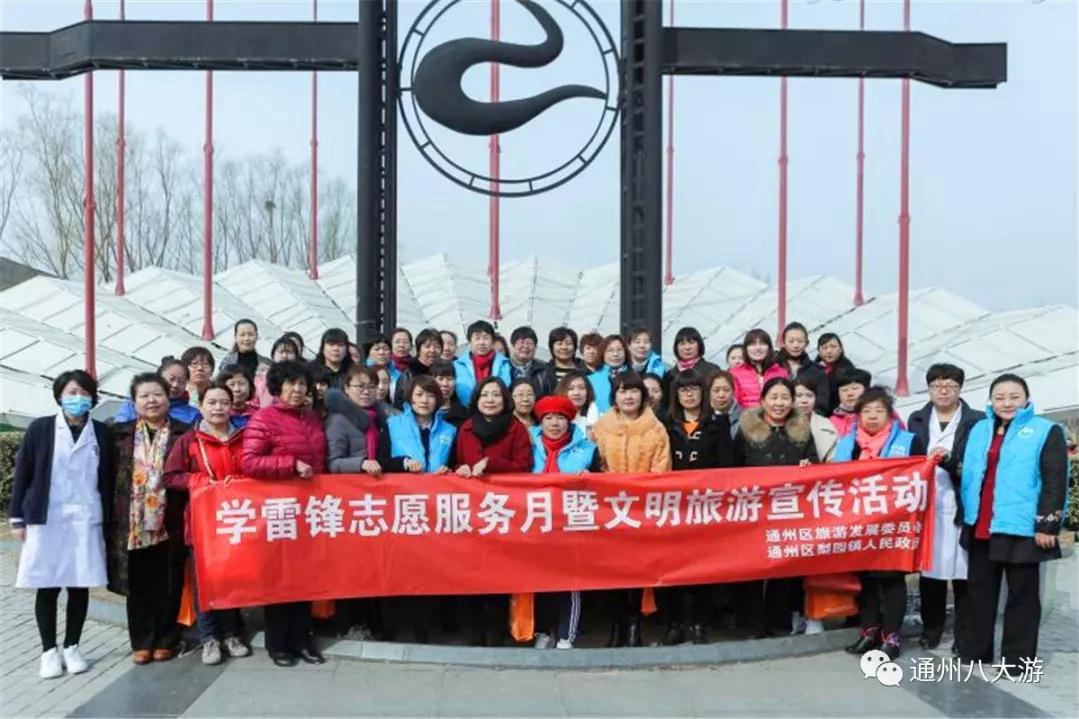阳春三月,春暖花开,正是人们外出春游的好时节。为积极培育和践行社会主义核心价值观,大力弘扬“奉献、友爱、互助、进步”的志愿精神,推进志愿服务制度化,促进学雷锋活动常态化,按照区文明办、区民政局、区志愿服务联合会《关于开展通州区2018年学雷锋志愿服务推动月活动的通知》要求,3月20日上午,通州区旅游委联合通州区梨园镇政府在梨园主题公园开展了“学雷锋志愿服务月暨文明旅游宣传活动”。