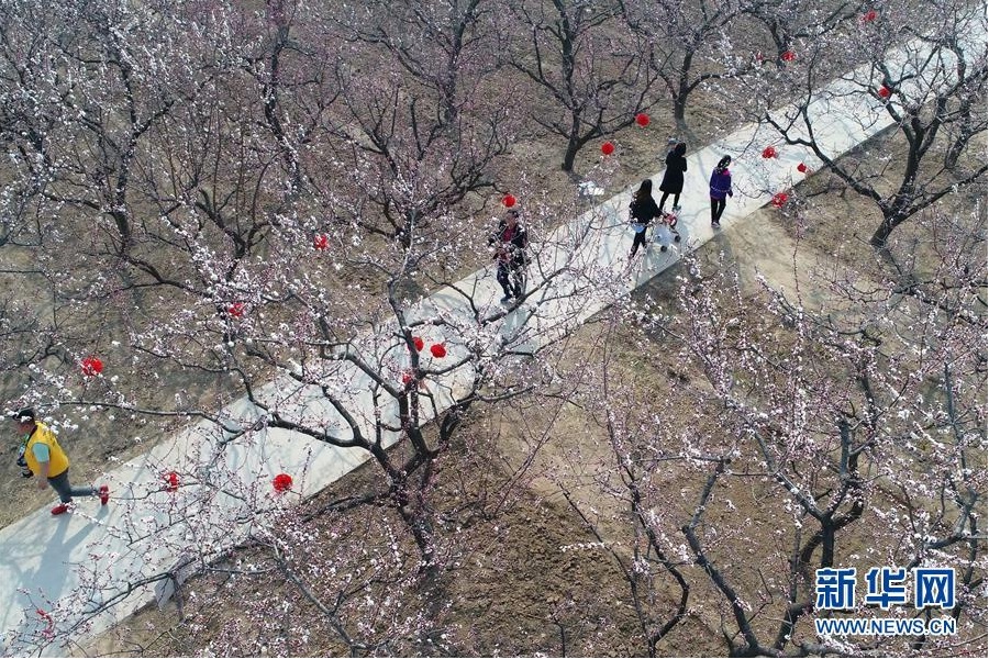 3月24日,游客在巨鹿县巨鹿镇西韩庄村杏林内游览。连日来,随着气温回升,河北省巨鹿县5万余亩杏花相继开放,吸引了众多游客前来踏春赏花。 新华社记者 牟宇 摄