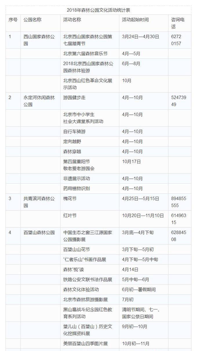 今天,再送您一张2018年森林公园文化活动统计表。有了它,再也不用为节假日不知去哪儿而发愁。