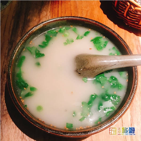 店里的金牌驴肉火烧和普通驴肉火烧的区别就在于金牌的里面是纯瘦的,没有肥肉,再来碗儿驴粉汤真的是极好的!