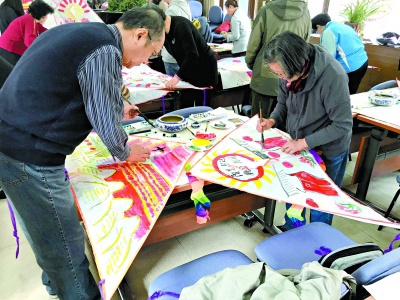 昨天,东城区景山街道魏家社区组织了“拥抱新时代 描绘新风貌 放飞新梦想”画纸鸢活动,40多位社区居民欢聚一堂,拿起画笔,在白风筝上描绘新时代、新梦想,清明节期间踏青放飞。