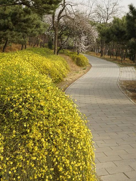 每年3、4月份,迎春花、山桃花开得漫山遍野,各式各样的山花,散布在山间与路旁,美得让人窒息。