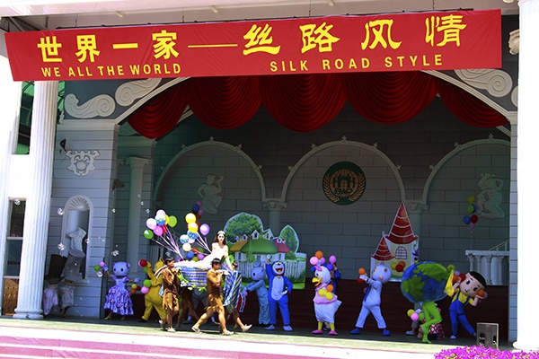 公园艺术剧场:“丝路风情炫舞台”上演:五大洲歌手联袂演唱《WE ARE THE WORLD》主题歌,古典舞者演艺历史穿越剧——古韵楼兰、亚美尼亚魔法师手技、俄罗斯小丑杂耍亮眼吸睛,乌克兰美少女的阿拉伯舞、莫斯科女孩三人组、时尚抖音,古巴—热辣桑巴、太平洋—夏威夷草裙舞、东南亚—竹竿舞,埃及胡旋舞,法国红磨坊——康康舞、印度——天竺之恋、中国杂技——空中绸吊、保加利亚——大吊环、乌干达——非洲草裙鼓舞,惊焰的佤族喷火,焕彩的霓羽服装秀等精彩纷呈,穿插以葫芦娃、大头娃娃、喜羊羊、灰太狼、大鸟、机器猫等形象打造的童话动漫真人秀,点亮整台沉浸式的炫彩舞台。