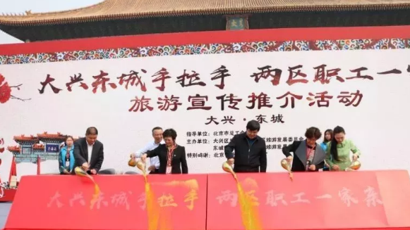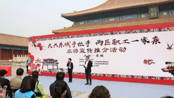 4月19日,“大兴东城手拉手·两区职工一家亲”大兴旅游宣传推介活动,在北京市劳动人民文化宫太庙南广场成功举办。