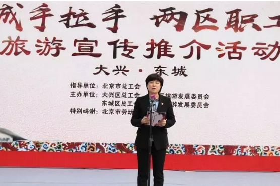 活动中,大兴区旅游委副主任马兵发布了大兴旅游资源,诚挚邀请市民游客到大兴休闲度假,共享花美瓜甜。大兴区总工会向东城区总工会发出旅游邀约,期待两区职工游客互游,共同推动城乡共建、旅游互惠,造福两地居民。现场除了旅游产品展示展卖以外,还进行了“美丽大兴”职工摄影巡展首展。