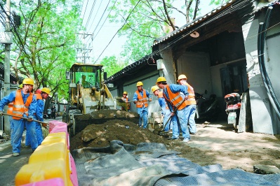 昨天上午,西城区金融街街道西斜街42号院门前,十几名工人正忙着挖沟铺设弱电线缆管道。笔者从施工现场了解到,今年年底前,金融街88条街巷胡同的架空线将全部入地。