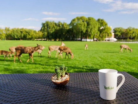 除了露天汤泉,院内的环境更加吸引人。走进园内瞬间被绿色包围,近千亩的园林绿化率高达80%,16个标准足球场大小的湖泊,上千种植被草木,上百种鸟类。即使到冬天这些候鸟也不愿离去。还有梅花鹿和羊驼在园内悠闲散步。专家称“这里已有完整的生物生态链”,人与自然和谐相处,这番场景,恐怕只有法国郊区的园林或者新西兰的牧场才有。