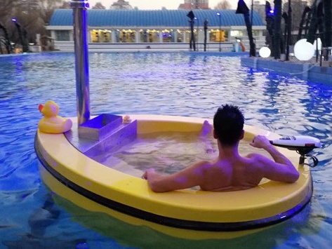 这里有依山畔树林而建的四个独立露天汤泉池,篱蔓隔断,各有特色。其中一座摆放着很多充满童趣的蛋鸭;另有一座采用独特的透明玻璃设计,可拍出美美的水下照片。还有北方唯一的户外热带泳池,四周种植了棕榈椰林,池畔餐厅还可以看户外电影,到了夏季别有一番风情。