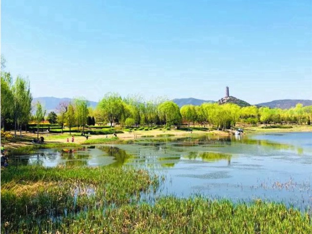 公园与周边颐和园、玉泉山协调一致、相得益彰,提升了整个公园的整体感觉,公园内草地开阔,绿树成荫,园中保留的几处古迹,更是为公园添加了些许文化元素。