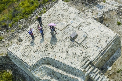 4月29日,摄影师在直升机上航拍红石门长城,这里是北京、天津、河北的一处地理分界点。烽火台中心的三界碑让这个只有10多平方米大小的烽火台成为三地共有共享的知名景点。