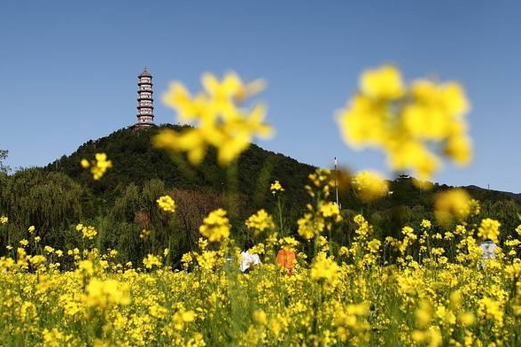 近日,颐和园西门外的北坞公园里,4000平方米的水稻田里油菜花盛开。这是每年水稻种植前的春种作物,让市民不用远足便可免费欣赏到美景。