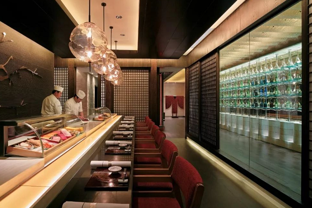京城最多藏酒的日本料理店之一,玄关处一整面清酒展示墙,共收纳来自日本各地清酒50余款,纯米、吟酿、大吟酿等各层次、各类型均有收录,更有收藏级日本威士忌可供品鉴。