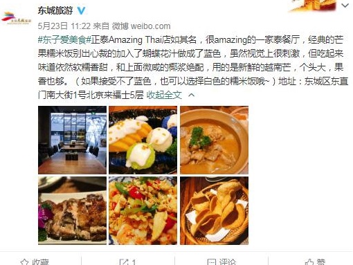 正泰Amazing Thai店如其名,很amazing的一家泰餐厅,经典的芒果糯米饭别出心裁的加入了蝴蝶花汁做成了蓝色,虽然视觉上很刺激,但吃起来味道依然软糯香甜,和上面微咸的椰浆绝配,用的是新鲜的越南芒,个头大,果香也够。(如果接受不了蓝色,也可以选择白色的糯米饭哦~)