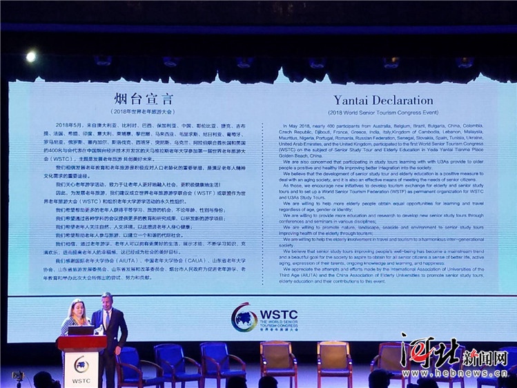 研讨会最后,全体与会嘉宾表决通过《烟台宣言》,共同希冀“通过老年游学,老年人可以拥有更美好的生活、展示才能、不断学习知识、充满欢乐,进而提高老年人的幸福感,这已经成为社会的美好目标。”