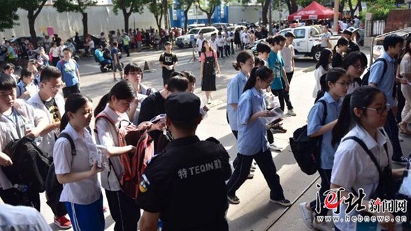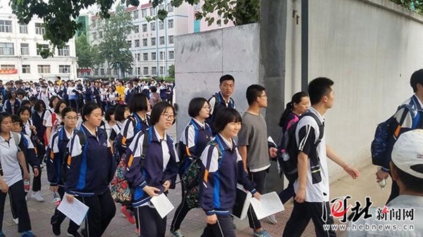 8点35分,石家庄市第15中学。考生们信心满满地步入考场。